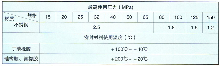 2、使用溫度:根據(jù)密封材質(zhì)不同,丁晴橡膠-20℃~+100℃,氟橡膠-20℃~+200℃。